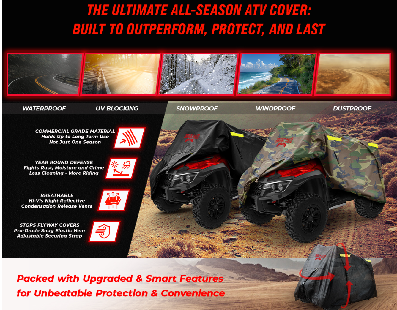 Kept my Honda ATV covered outdoors through hot summers and rainy winters. After ~5 years I saw a couple small wear holes and one seam finally gave—good run. Great fit, reasonable price. Expecting the same from this new one.